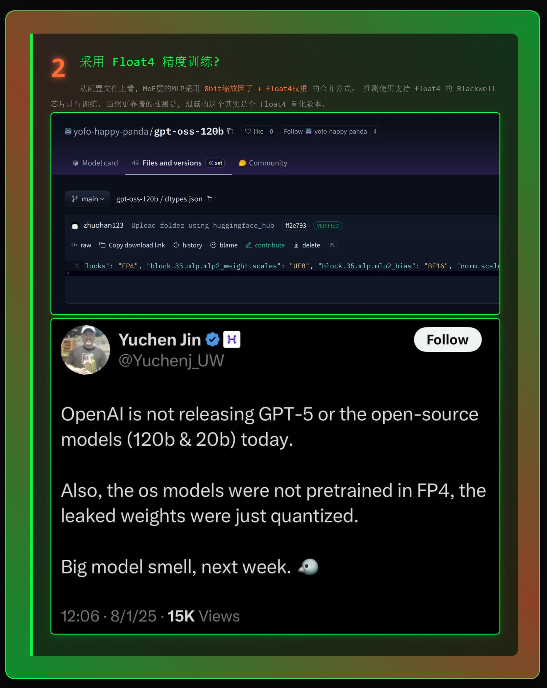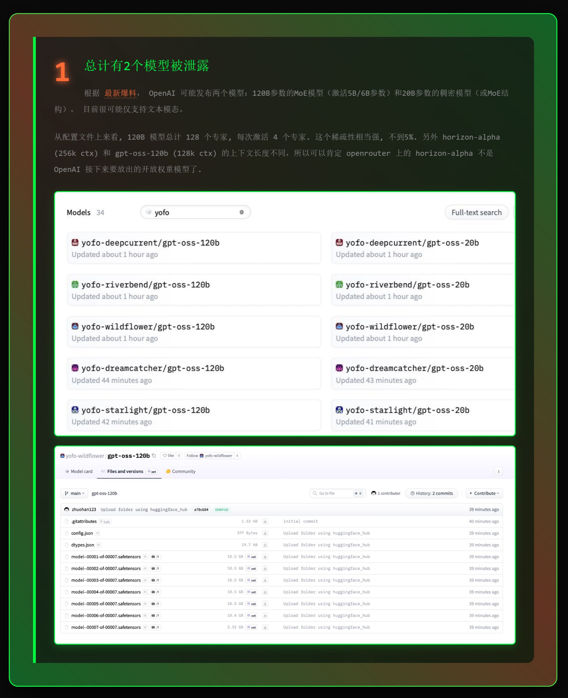 🤔🚀🤫💥OpenAI 的 2024 年:推理模型的突破与 GPT-5 的遗憾 OpenAI在推理模型领域取得显著进展,开发了一系列推理模型(包括o1和o3模型),但GPT-5项目(Orion)最终失败,原因在于预训练数据的限制。OpenAI的120B参数的MoE模型(openai-oss-120B)和20B参数模型(openai-oss-20B)意外泄露。图片1 图片2 图片3 图片4